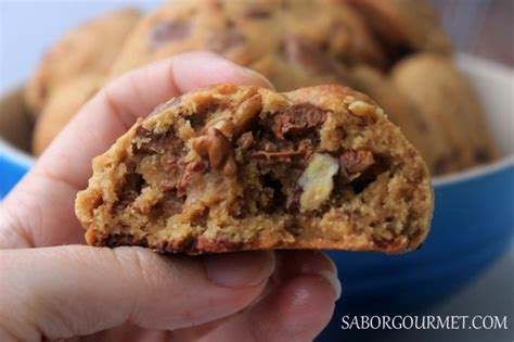 Así es como decidí por la receta publicada por Delish, que además de la publicación tienen un video muy detallado. El resultado fue genial, aunque esperaba que las galletas queden un poco más gorditas, cosa que no sucedió. Quizás tuve alguna falla en la preparación, no estoy segura, pero las volveré a hacer, aunque haré un par de cambios: les pondré más pecanas y en lugar de chispitas de chocolate les pondré chocolate en trozos.